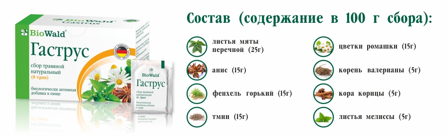 Сбор из 8 трав содержит эфирные масла (дополнительный источник терпеноидов) и используется для поддержания физиологических функций пищеварительной системы.